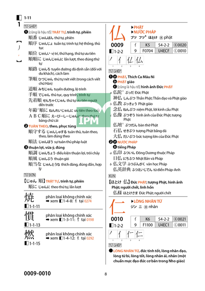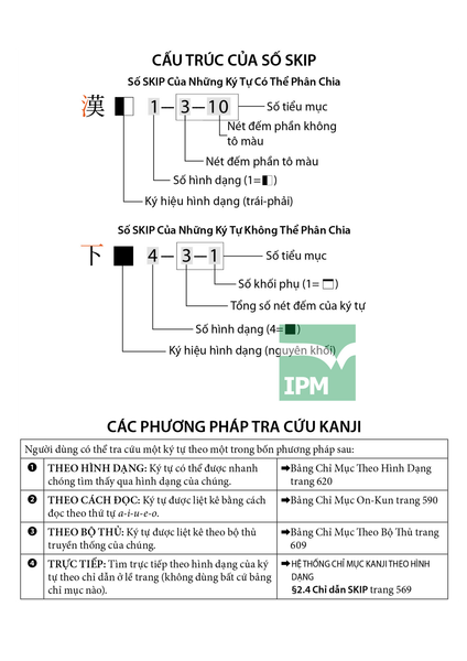 TỪ ĐIỂN KANJI DÀNH CHO NGƯỜI HỌC cung cấp lượng thông tin lớn và vô cùng hữu ích về kanji, nhất là cách sử dụng kanji trong từ ghép, cùng những tính năng độc đáo mà điển hình là “nghĩa chính” và SKIP (System of Kanji Indexing by Patterns - Hệ Thống Chỉ Mục Kanji Theo Hình Dạng).