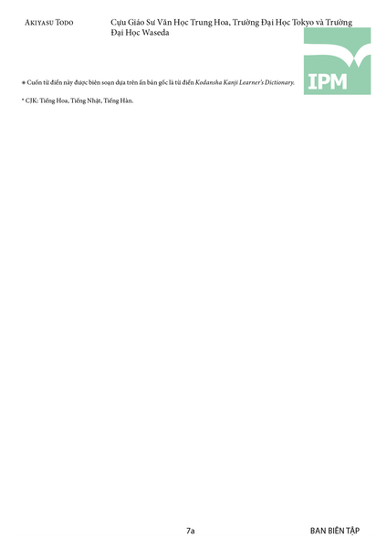 TỪ ĐIỂN KANJI DÀNH CHO NGƯỜI HỌC là cuốn từ điển Kanji-Việt chính thức đầu tiên được xuất bản, với kiến thức chính xác và chuyên sâu về tất cả các “Kanji trong trường học” theo quy định của chính phủ Nhật Bản dành cho bậc giáo dục tiểu học.